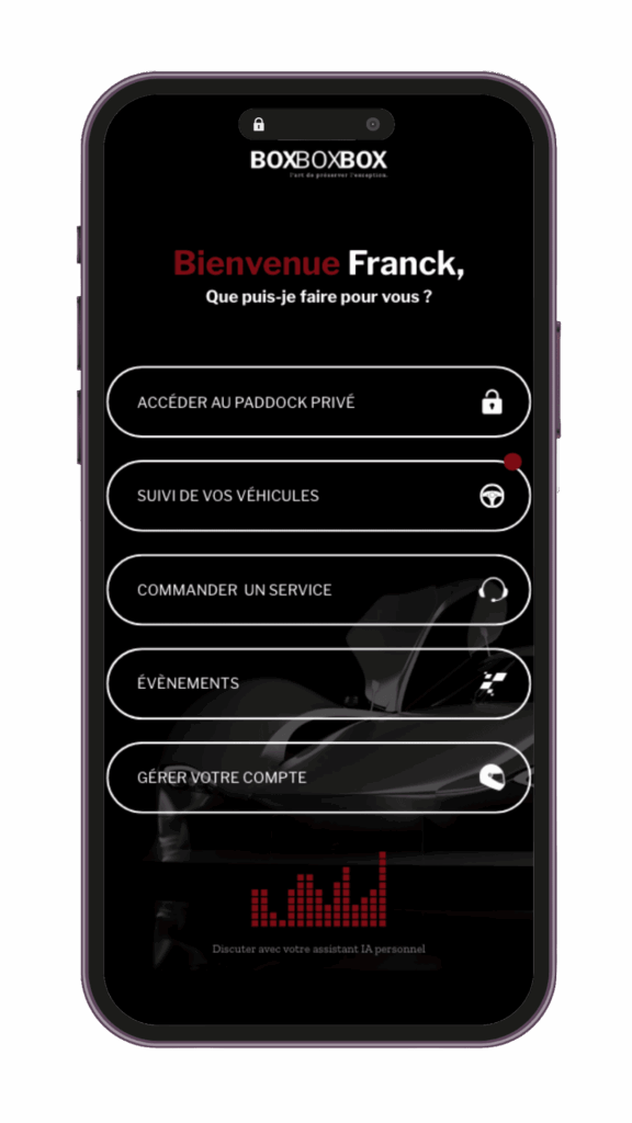 Notre mission : libérer les passionnés des contraintes logistiques en leur proposant une expérience sur-mesure, fluide et connectée. Un paddock confidentiel où chaque véhicule bénéficie d’une attention experte, dans un cadre raffiné et inspirant.
